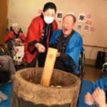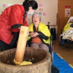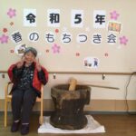 3月8日に春の餅つき会を行いました。今回は普通の餅ではなく芋餅で餅つきを行いました。芋餅でも弾力があり、普段の餅つきと変わらず餅つきができました。お客様1人1人が餅つきを行い大変喜ばれていました。皆様がついたお餅にチーズを入れて、チーズ入り芋餅を食べました。皆さん「美味しい」と話されながら召し上がっていました。 栄町拠点 栄町コラボケアセンター栄町ぬくもりの家三沢訪問看護ステーションホームヘルパーステーション青空訪問入浴サービスステーション青空