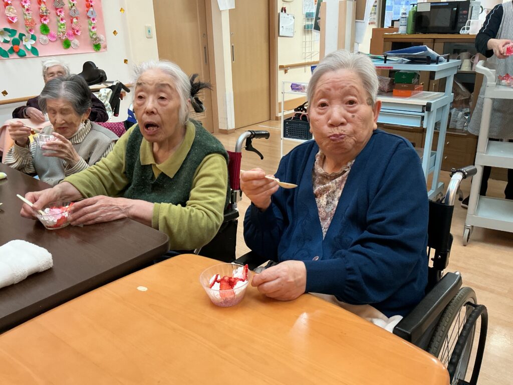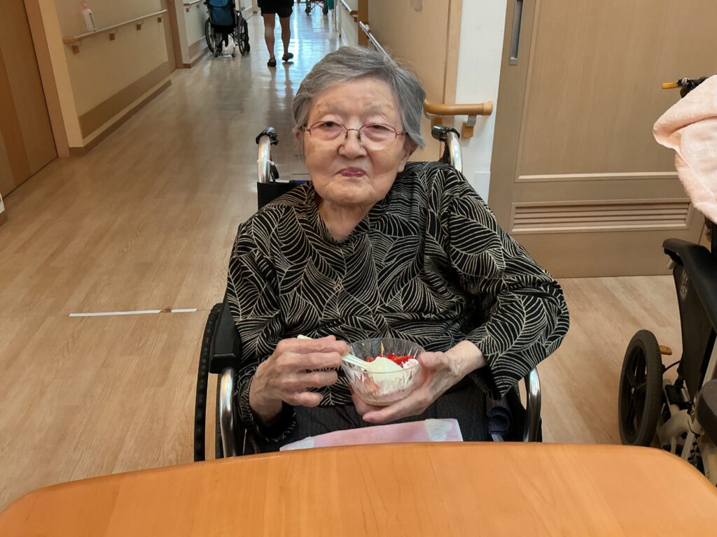アイスクリームに生クリームとイチゴを添えていただきます(^-^)