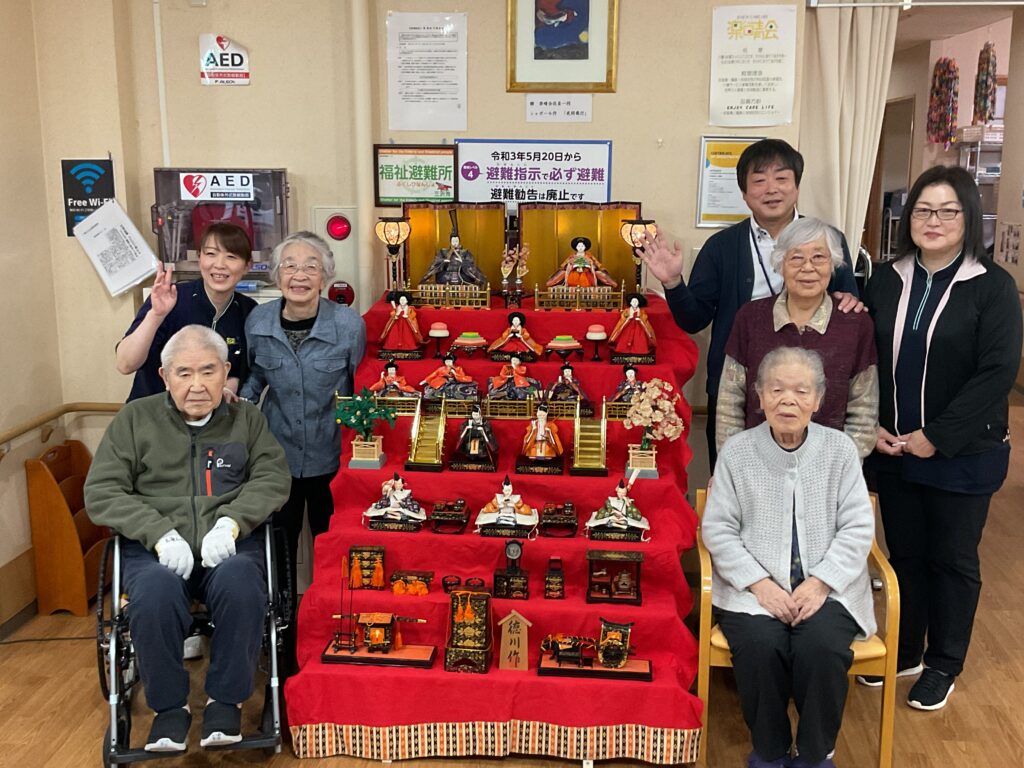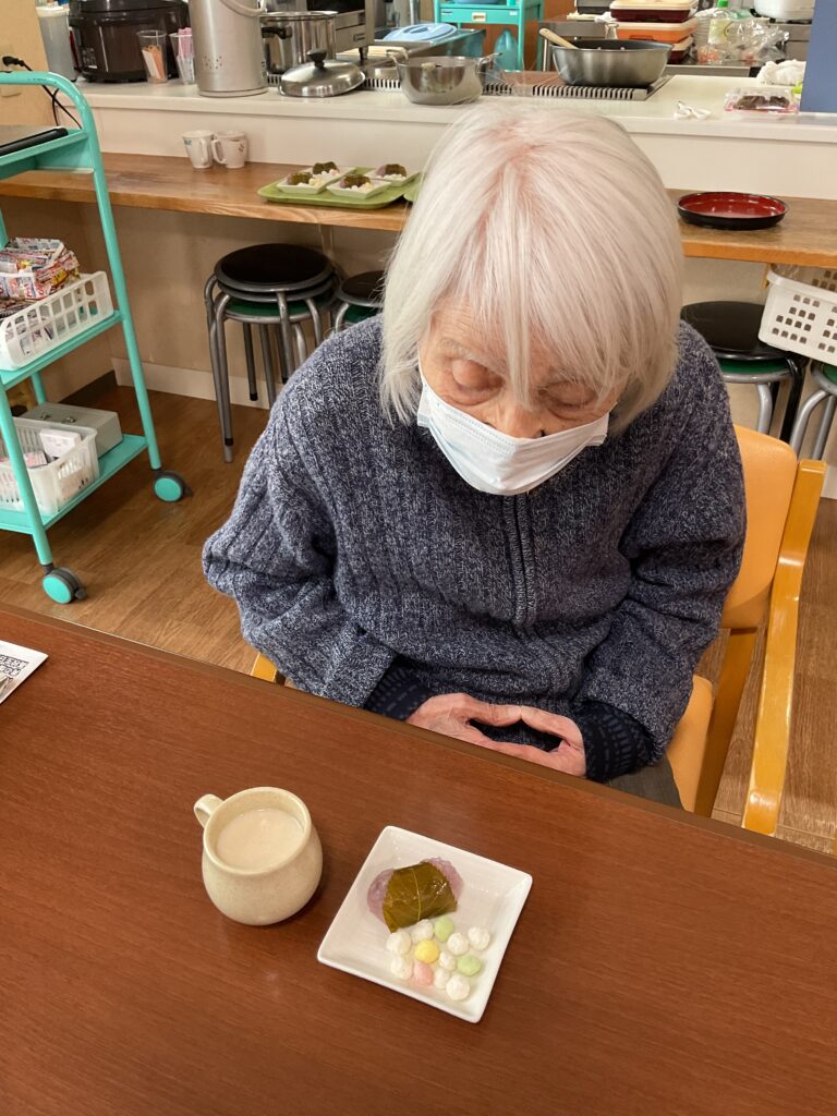 3月3日ひな祭り会を行いました。皆でひな祭りの歌をうたい、その後は甘酒・ひなあられ・道明寺を召し上がりました。道明寺をみて「懐かしい」「食べるのもったいない」と話されるお客さまもおりました。